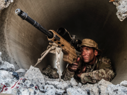 sniper - A skilled military shooter detailed to spot and pick off enemy soldiers from a concealed place