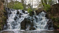 cascade - (of water) pour downward rapidly and in large quantities